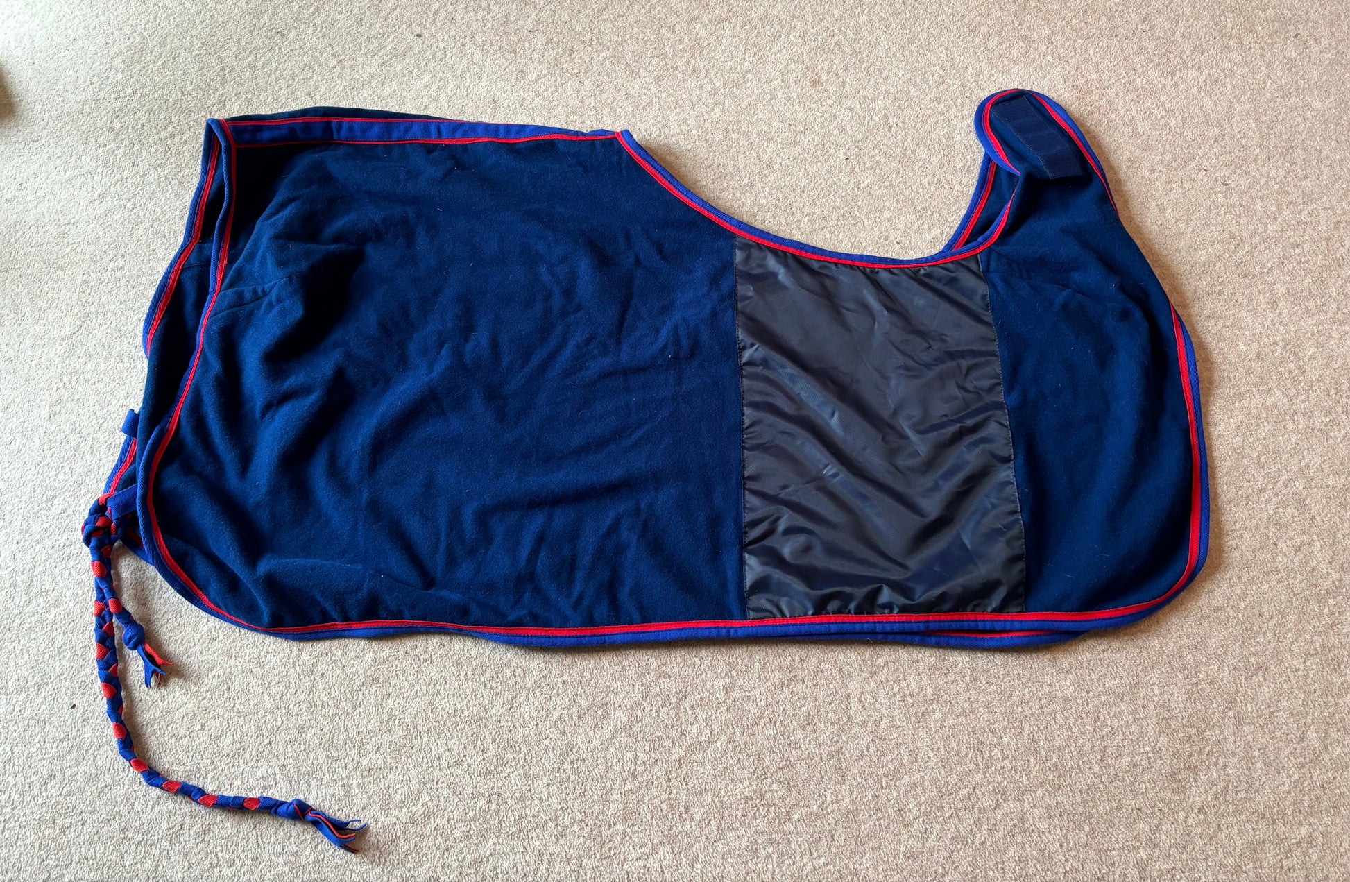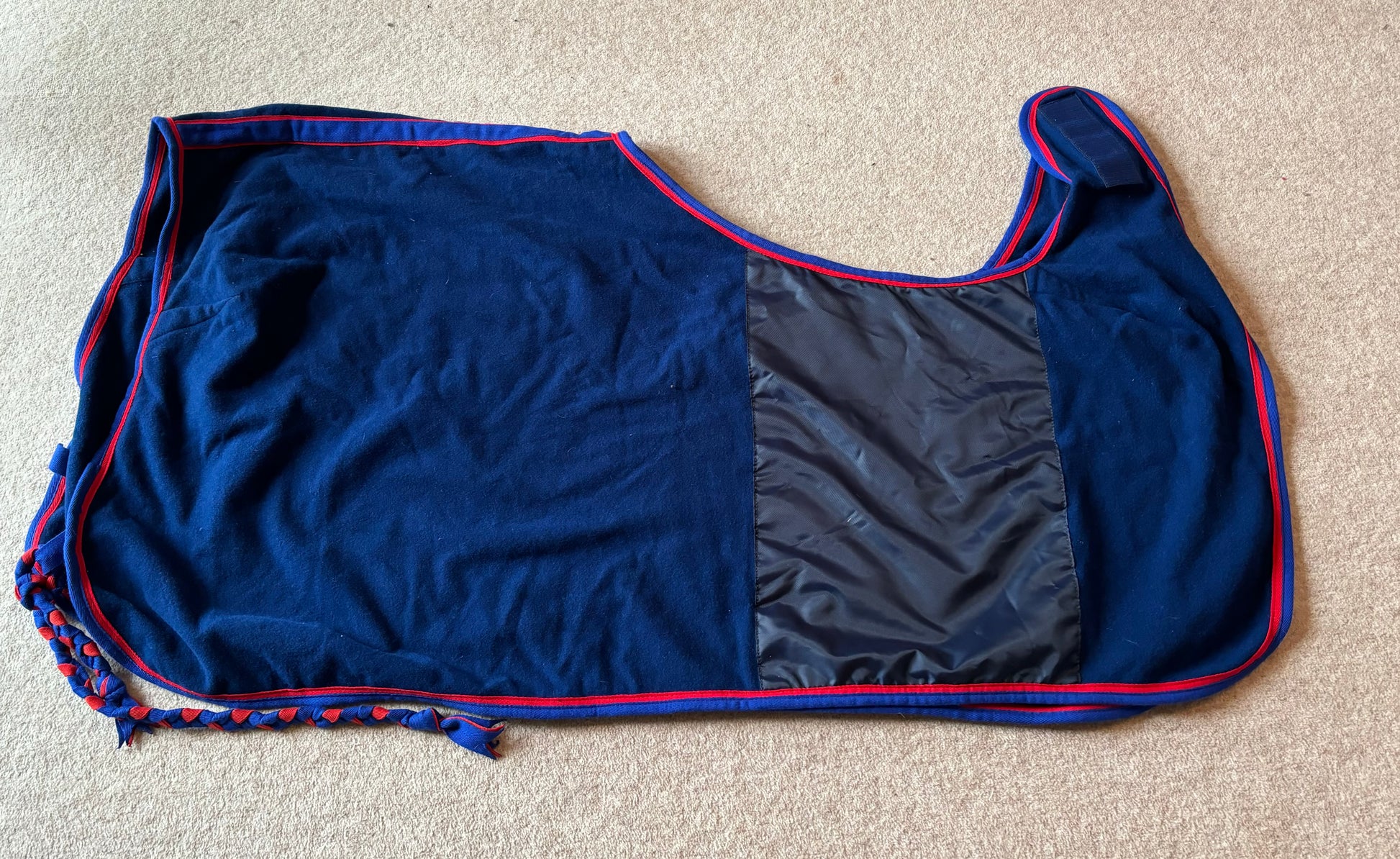Lansdown Ride On Fleece Exercise Sheet Rug - Blue with Red and Blue Binding