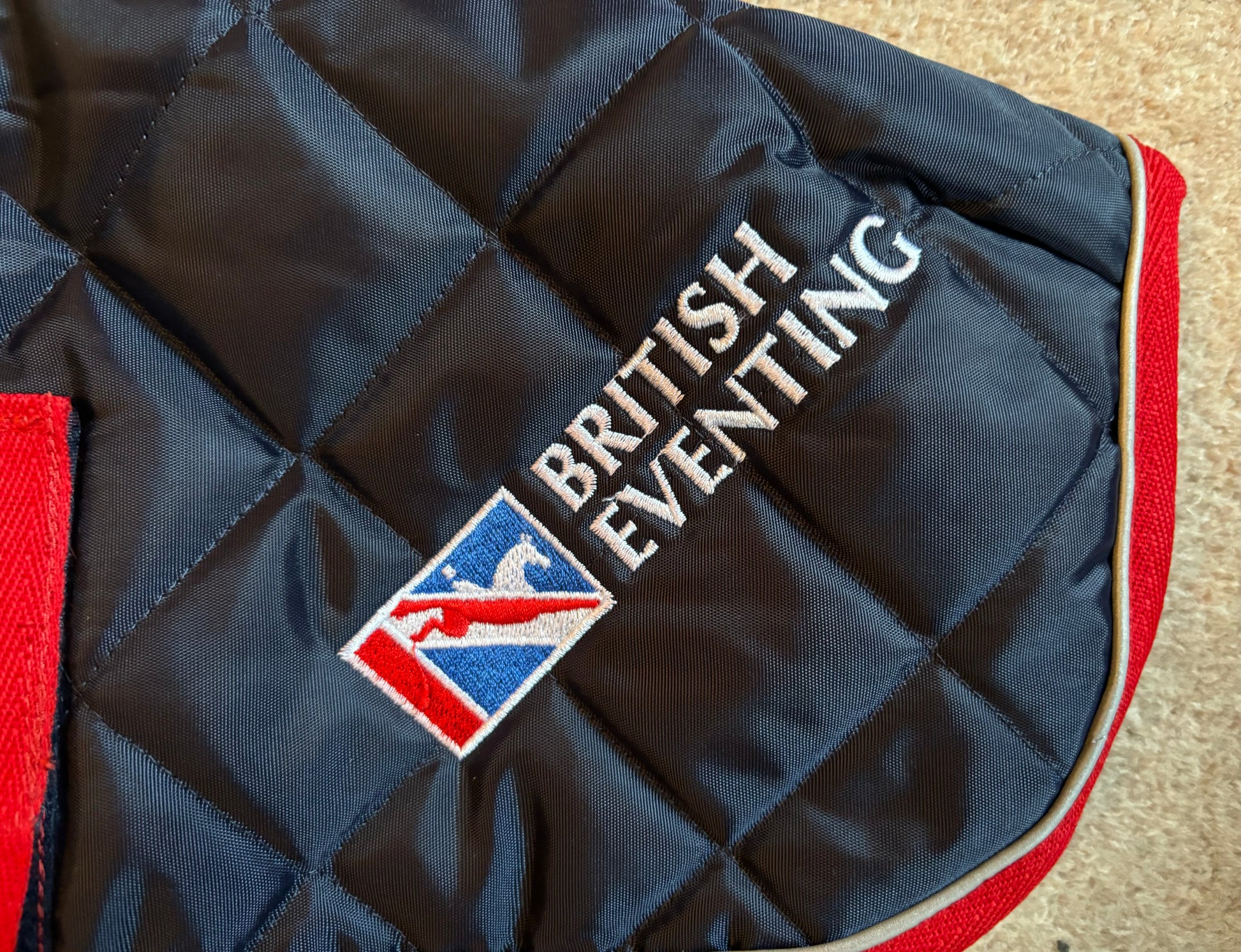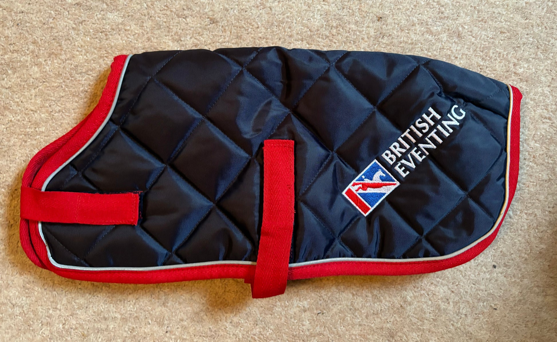 Showerproof Quilted Dog Coat - Lansdown British Eventing - Navy with Red and Reflective Binding