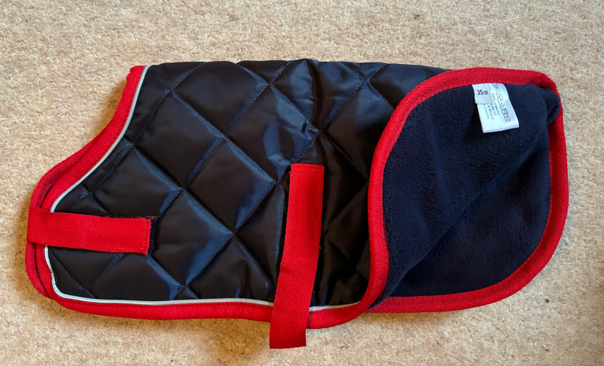 - Dual purpose dog coat as looks smart but also with cosy warm fleece lining